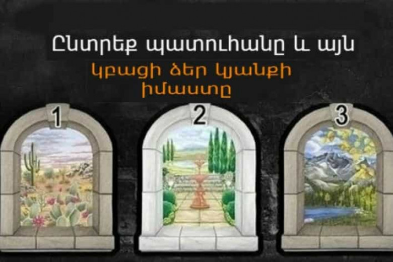 Marketium-ը գրում է, որ պատուհաններով թեստը կօգնի հասկանալ, թե ինչ կա ձեր հոգում։ Ընտրեք դրանցից մեկն ու պարզեք, թե ինչ է ձեզ ապագայում սպասվում։ 5 վայրկյանից ավելի չմտածեք, պարզապես ընտրեք այն մեկն, որն ավելի շատ եք հավանում։