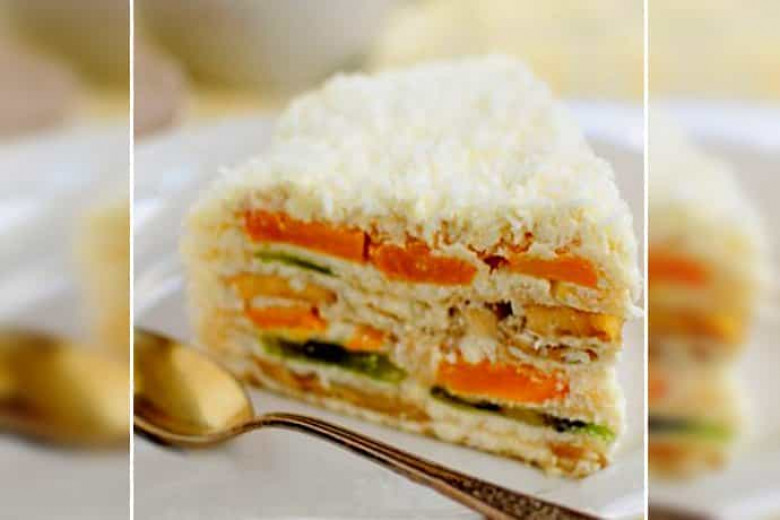 Դեղձով շատ համեղ տորթ, որը պատրաստվում է առանց թխելու