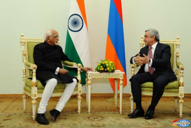 Ինչպես «Արմենպրես»-ին տեղեկացրին ՀՀ նախագահի աշխատակազմի հասարակայնության եւ տեղեկատվության միջոցների հետ կապերի վարչությունից, հանրապետության Նախագահը ողջունել է հյուրերին Հայաստանում՝ հույս հայտնելով, որ Հնդկաստանի փոխնախագահի պաշտոնական այցը Հայաստան նոր լիցք կհաղորդի հայ-հնդկական դարավոր բարեկամությանը: Անդրադառնալով հայ-հնդկական պատմական առնչություններին՝ Նախագահ Սարգսյանը նկատել է, որ դեռևս 17-19-րդ դարերում Հնդկաստանում կազմավորված հայկական համայնքներն ակտիվ դերակատարություն են ունեցել Հնդկատանի հասարակական, քաղաքական, տնտեսական ու մշակութային կյանքում, այդ թվում՝ Կալկաթայի, որտեղ ծնվել է Հնդկաստանի փոխնախագահ Մոհամմադ Համիդ Անսարին: