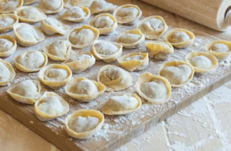 4. Պատրաստի խմորը 20 րոպեով դնել սառնարանի մեջ, որպեսզի այն հանգստանա: Դրանից հետո պելմեններ ձևավորել յուրաքանչյուր տեսակի խճողակով: