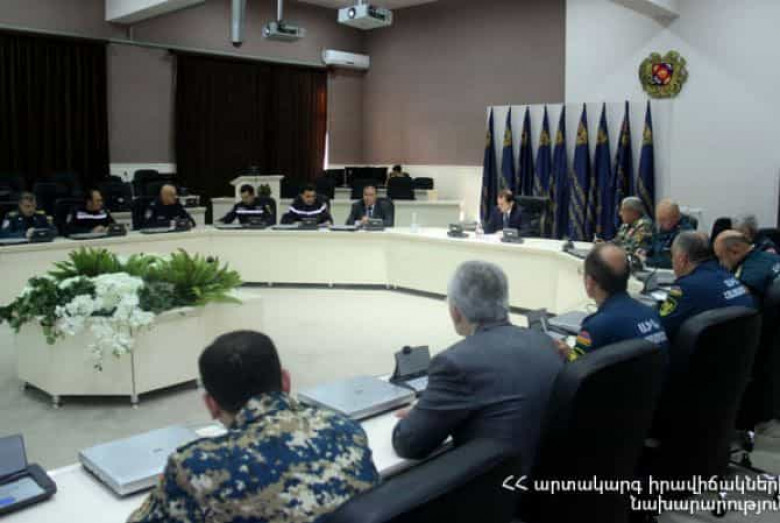 Ճգնաժամային կառավարման ազգային կենտրոնը հայտարարել է ԱԻՆ անձնակազմի ուսումնական հավաք, և վաղ առավոտյան ԱԻ նախարարի մոտ կայացել է խորհրդակցություն, որին ներկա են եղել ՓԾ ղեկավար կազմը և սյլ առնչվող ստորաբաժանումների ներկայացուցիչներ: