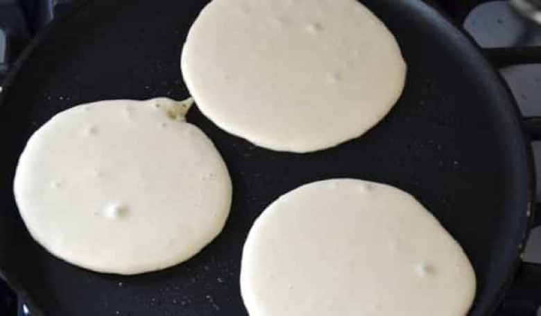 7. Հենց տեսնեք, որ նրբաբլիթները պղպջակներով են պատվում, զգուշորեն շրջեք և տապակեք հակառակ կողմից: