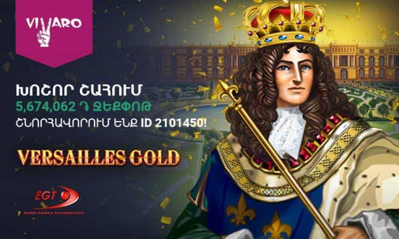 ՀԱՍԱՐԱԿՈՒԹՅՈՒՆՀերթական խոշոր շահումն է արձանագրվել Վիվառոյում: Կազինոյի Versailles Gold խաղում շահումը գրանցվել է ապրիլի 30-ին, իսկ մասնակցի կատարած խաղադրույքը կազմել է ընդամենը 150 դրամ: