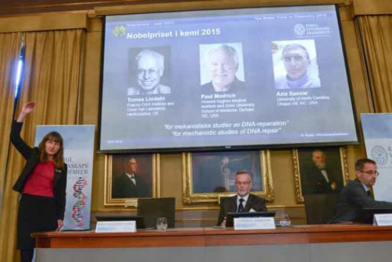 ՀԱՍԱՐԱԿՈՒԹՅՈՒՆՔիմիայի բնագավառում 2015 թվականին Նոբելյան մրցանակը շնորհվել Է Թոմաս Լինդալին, Պոլ Մոդրիչին եւ Ազիզ Սանկարին՝ ԴՆԹ-ի վերականգնման մեխանիզմի ուսումնասիրման համար: Այդ մասին, հոկտեմբերի 7-ին հայտարարել Է Շվեդիայի Գիտությունների թագավորական ակադեմիային առընթեր Նոբելյան կոմիտեն: