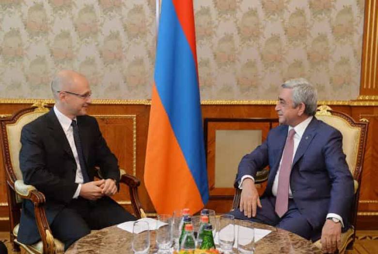 ՀԱՍԱՐԱԿՈՒԹՅՈՒՆՆախագահ Սերժ Սարգսյանը հոկտեմբերի 7-ին ընդունել է ատոմային էներգիայի հարցերով ՌԴ պետական «Ռոսատոմ» կորպորացիայի գլխավոր տնօրեն Սերգեյ Կիրիենկոյին: Ինչպես տեղեկացրին ՀՀ նախագահի աշխատակազմի հասարակայնության եւ տեղեկատվության մ իջոցների հետ կապերի վարչությունից, ընդգծելով, որ հայ-ռուսական դաշնակցային գործընկերության երկկողմ օրակարգում էներգետիկայի ոլորտն իր կարևոր և ուրույն տեղն ունի, Հանրապետության Նախագահը նշել է, որ հենց այդ նկատառումով անցյալ ամիս ՌԴ Նախագահի հետ հանդիպման ժամանակ հանգամանալից անդրադարձ է եղել նաև էներգետիկայի ոլորտում համատեղ երկարաժամկետ ծրագրերի իրագործման հարցերին: