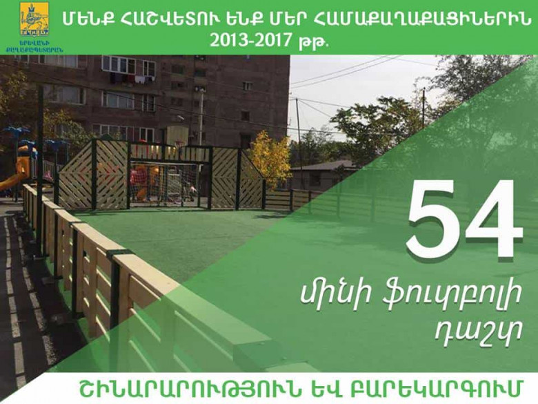 2013-2017թթ. Երևանի բակերում ստեղծվել է 54 մինի ֆուտբոլի դաշտ
