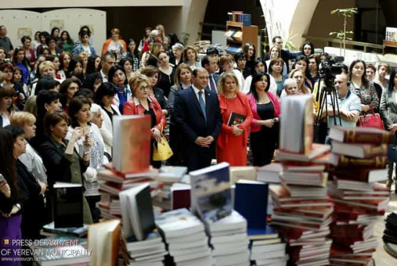 Քաղաքապետարանի ճեմասրահում կազմակերպված գրքերի հանձնման հանդիսավոր արարողությանը ներկա է գտնվել Երևանի քաղաքապետ Տարոն Մարգարյանը: