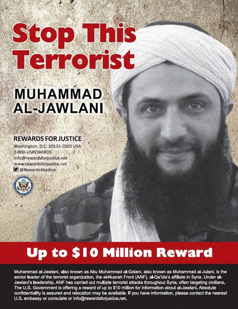ԱՄՆ պետդեպը 10 մլն դոլար պարգևատրում է խոստանում Աբու Մուհամմադ ալ-Ջուլանիի մասին տեղեկություն տրամադրելու համար