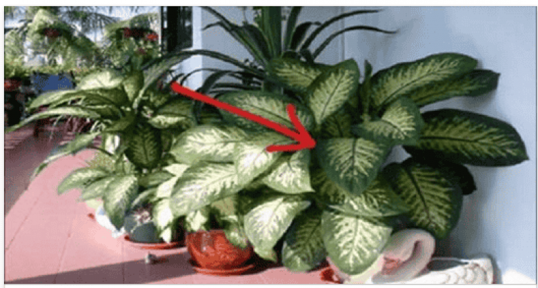 Դա դիֆֆենբախիան է, դրա յուրաքանչյուր մասը թունավոր է (կալցիումի օքսալատ է պարունակում):