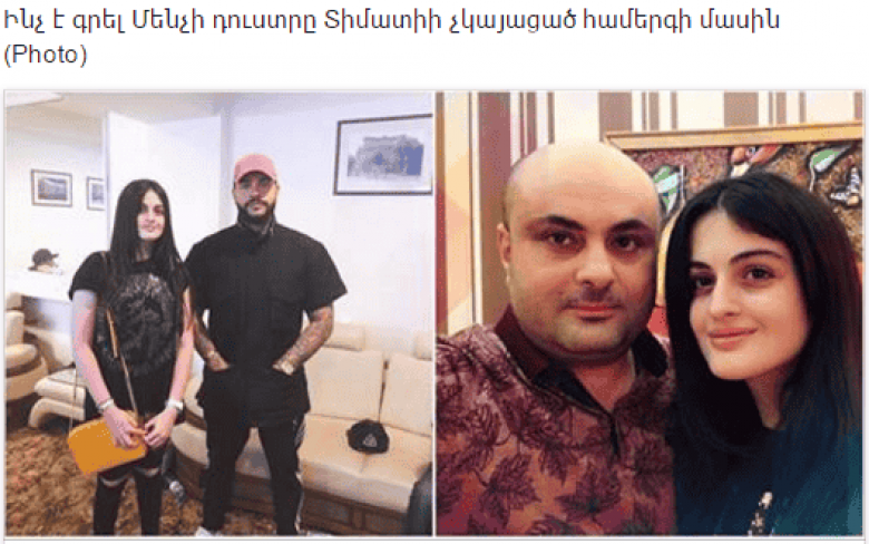 Ինչ է գրել Մենչի դուստրը Տիմատիի չկայացած համերգի մասին (Photo)