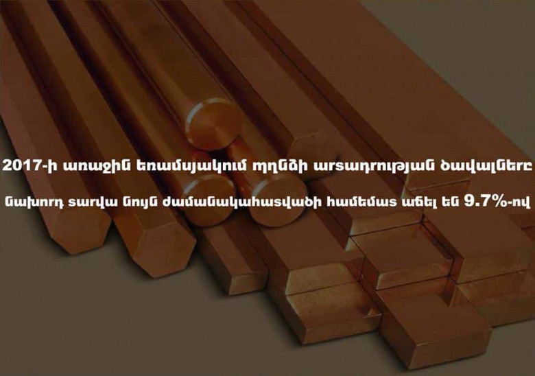 ԲԼՈԳԱՎԾ-ի հրապարակած տվյալներից տեղեկանում ենք, որ 2017թ.-ի հունվար-մարտ ամիսներին Հայաստանում արտադրվել է 101.9 հազար տոննա պղնձի խտանյութ։ 2016թ.-ի համանման ցուցանիշի համեմատ արտադրության ծավալներն աճել են 9.7%-ով։