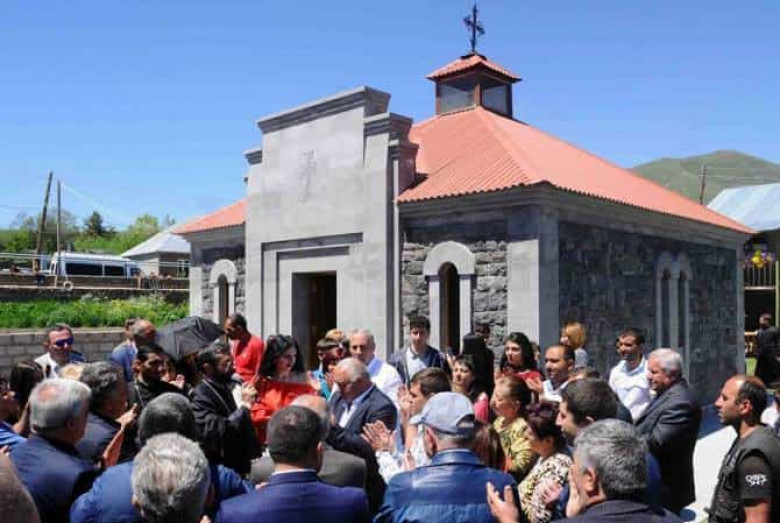 Տեր Մուշե քահանա Վահանյանի օրհնությամբ նախօրեին օծված խաչը տեղադրվել է մատուռին: Կառույցի վերականգնումն իրականացրել է վարդենիսցի բարերար Շահեն Աղաբաբայանը: