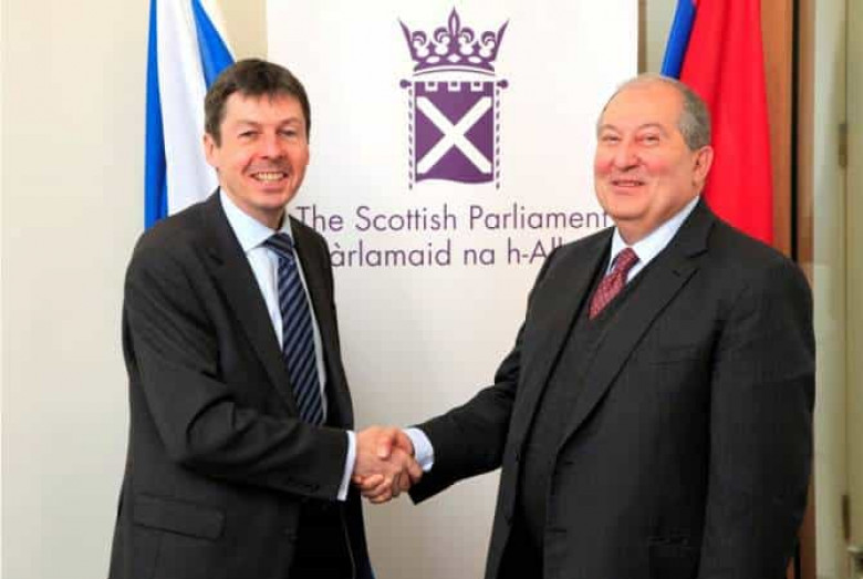 Խորհրդարանի խոսնակ Քեն Մակինտոշի հետ հանդիպման ընթացքում ՀՀ դեսպանը հայտնեց հայկական կողմի հանձնառությունը զարգացնելու փոխշահավետ համագործակցությունը հնարավոր բոլոր ուղղություններով։ Մասնավորապես, նշվեց հայ–բրիտանական խորհրդարանական երկխոսության շրջանակներում Հայաստանի ու Շոտլանդիայի խորհրդարանների միջև կապերի ակտիվացման անհրաժեշտությունը՝ այցելությունների և խորհրդակցությունների, այլ համատեղ նախաձեռնությունների միոջոցով։ Արմեն Սարգսյանը ներկայացրեց անկախության շրջանում Հայաստանի զարգացման հիմնական փուլերը, ԼՂ հիմնախնդրի առանձնահատկությունները, խորհրդարանական կառավարման ձևին Հայաստանի անցման նշանակությունը։
