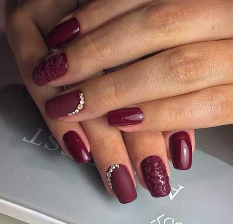 Մուգ կարմիր. մի քանի տարբերակ նորաձև եղունգների համար (ֆոտոշարք)
