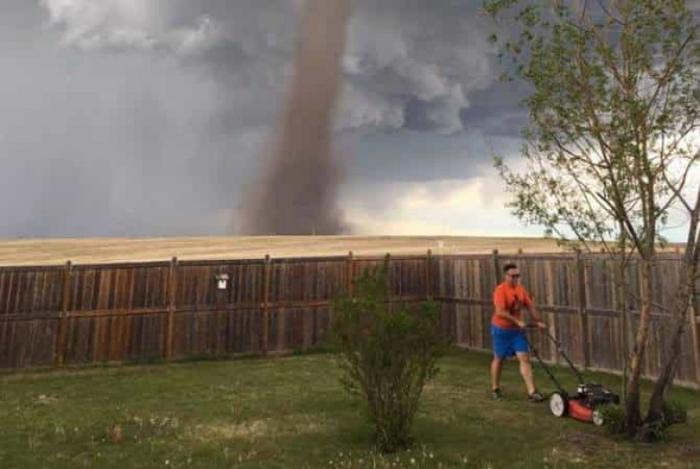 ՀԱՍԱՐԱԿՈՒԹՅՈՒՆ Կանադայի Ալբերտայի նահանգի բնակիչը որոշել Է, որ վրա հասնող պտտահողմը խոտածակը խուզելուց հրաժարվելու պատճառ չԷ: Լուսանկարը, որտեղ Թեունիս Վեսելս անունով տղամարդը շարունակում Է աշխատանքը մոլեգնող տարերքի ֆոնին, Facebook-ու հրապարակել Է նրա կինը, տեղեկացնում Է «Արմենպրես»-ը: