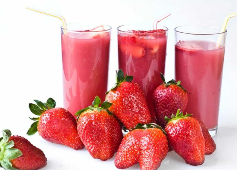 - Բլենդերում հարում ենք լայմը, ելակի խյուսը և ջուրը, ապա տեղափոխում սառնարան փոքր-ինչ սառչելու: