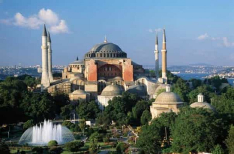 Նշենք, որ Այա Սոֆիան Բյուզանդիայի «ոսկեդարի» խորհրդանիշն է, Բյուզանդական կայսրության գլխավոր քրիստոնեական տաճարը, Կոստանդնուպոլսի պատրիարքի նստավայր։ Oսմանցի թուրքերի կողմից Բյուզանդիայի մայրաքաղաքի գրավումից հետո ծառայել է որպես մզկիթ, ներկայում թանգարան է։ Իր ներկա տեսքով կառուցվել է 532-537 թթ. Հուստինիանոս Ա կայսեր նախաձեռնությամբ՝ ճարտարապետներ Իսիդոր Միլեթացու և Անթիմիոս Թրալացու կողմից։
