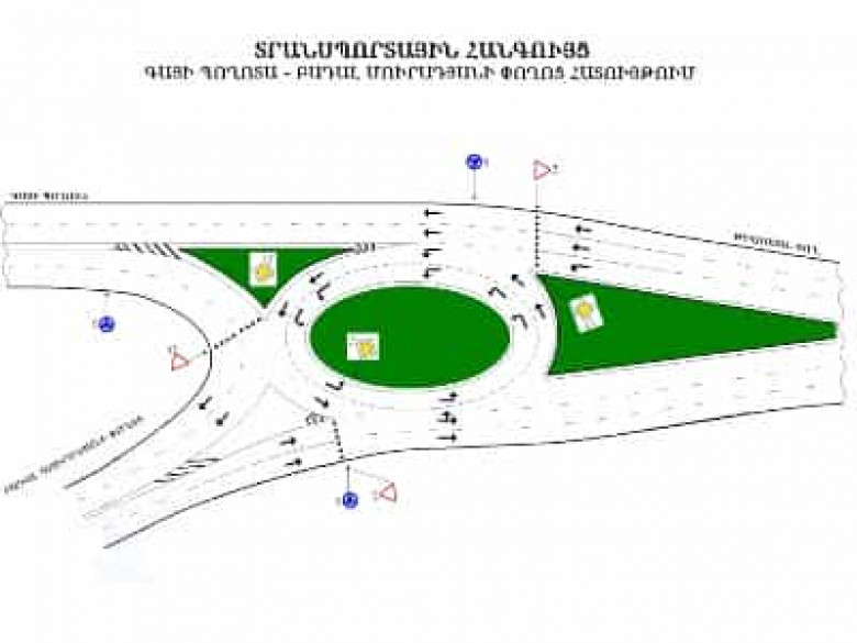 Համապատասխան ճանապարհային նշաններով եւ գծանշումներով երթեւեկությունը կկազմակերպվի այնպես, որ երթեւեկության առավելություն կունենան շրջանաձեւ երթեւեկության հատվածում գտնվող տրանսպորտային միջոցները՝ մերձակա փողոցներից շրջանաձեւ երթեւեկության հատված մուտք գործող տրանսպորտային միջոցները պետք է ճանապարհը զիջեն շրջանաձեւ երթեւեկության հատվածում գտնվող տրանսպորտային միջոցներին: