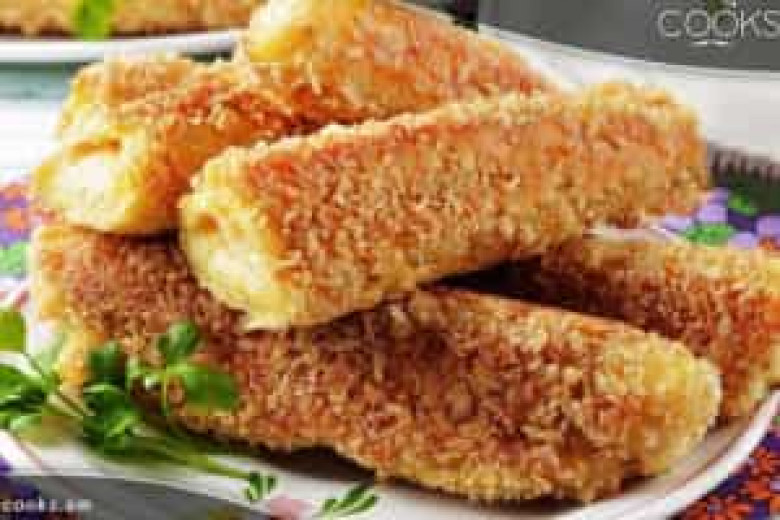 - Վարսակի փաթիլները բլենդերում մանրացնում ենք, իսկ ձվերն ու աղը՝ միասին պատառաքաղով հարում: Ձողիկները թաթախում ենք սկզբից ձվի, այնուհետև՝ վարսակի փաթիլների մեջ:
