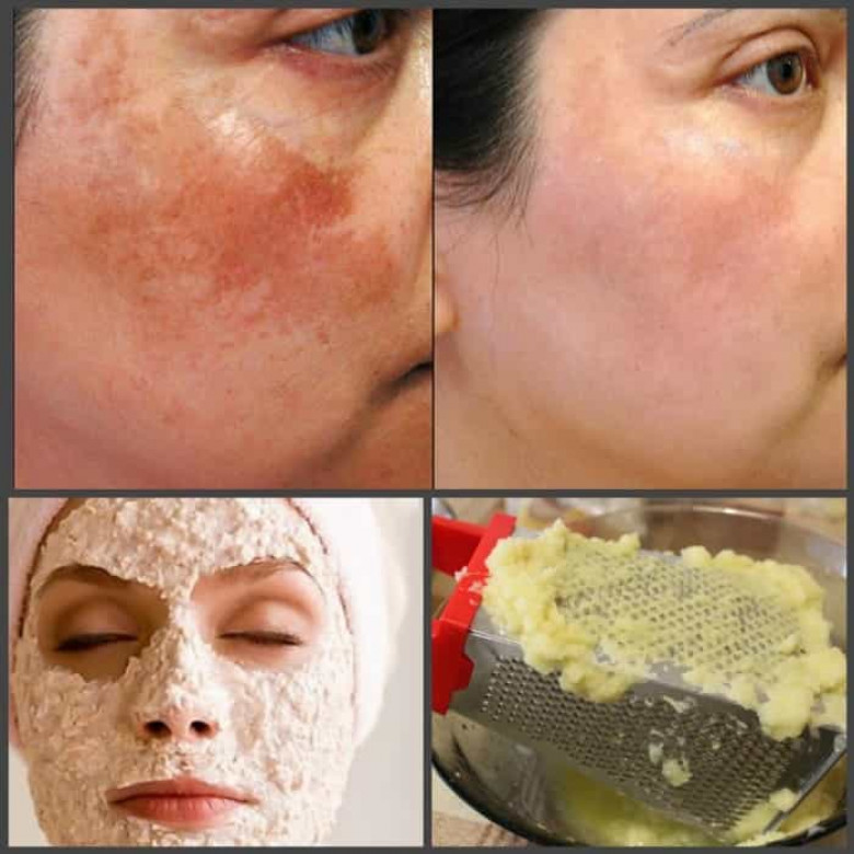 Եթե ցանկանում եք դեմքից հեռացնել պիգմենտային բծերն, ապա այս դիմակը ձեր համար է: Այս դեպքում ևս կարտոֆիլն անցկացնել քերիչով, քամել հյութը, ավելացնել միջին կես սոխի քամած հեղուկ: Խառնուրդը քսել դեմքին և պահել 10 րոպե: Դեմքը լվանալ տաք ջրով:
