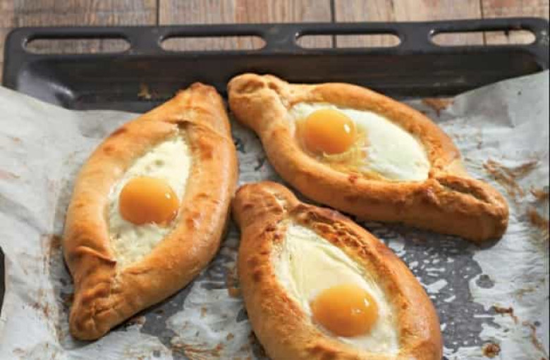 7. Պատրաստ լինելուց 4-5 րոպե առաջ անհրաժեշտ է խաչապուրիները հանել ջեռոցից, վրաները ձու ջարդել և նորից ուղարկել ջեռոց՝ մինչև վերջ թխվելու համար: