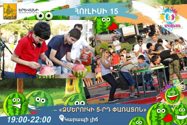 «Երևանյան ամառ 2017» ծրագրի շրջանակներում ս.թ. hուլիսի 15-ին` ժամը 19:00-ին, Կարապի լճի տարածքում կմեկնարկի ձմերուկի հինգերորդ փառատոնը: Արդեն ամենամյա դարձած այս միջոցառումը սիրված և սպասված տոն է ինչպես երևանցիների, այնպես էլ մայրաքաղաքի հյուրերի համար: