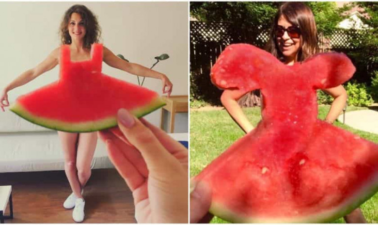ԼԱՅՖԹվիթերում ու Ինստագրամում նոր թրենդ է սկսվել՝ ձմերուկից զգեստներ։ Իրականում պարզ է՝ ձմերուկից հագուստ չէ։ Պարզապես նկարվում են՝ ծածկվելով ձմերուկի կտորով։
