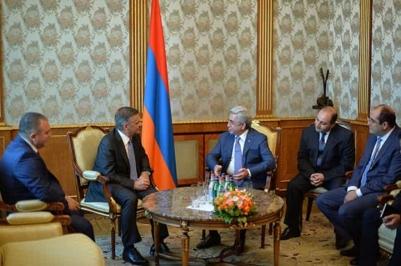 Երկրի ղեկավարի մամուլի գրասենյակից NEWS.am-ին հայտնում են, որ ողջունելով հյուրին մեր երկրում՝ Հանրապետության նախագահը հույս է հայտնել, որ Տափօղակով հոկեյի միջազգային ֆեդերացիայի նախագահի առաջին այցը Հայաստան զգալիորեն կխթանի մեր երկրում աշխարհի ամենատարածված եւ սիրված մարզաձեւերից մեկի զարգացումը: