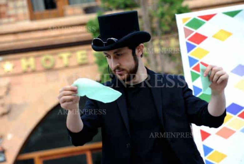 ՀԱՍԱՐԱԿՈՒԹՅՈՒՆԾաղկաձորում դեռ շարունակվում է Լեոնիդ Ենգիբարյանի անվան մնջախաղի միջազգային փառատոնը: Հուլիսի 24-ին Օրբելիների հրապարակում իլյուզիոնիստական հնարքներով լի վարպետության դաս անցկացրեց Նահապետ Արշակյանը՝ ներկաներին ներգրավվելով խաղի մեջ: Նա ցուցադրեց գնդակներով, պարաններով և գունավոր թաշկինակներով համարներ: Նահապետին օգնեցին փոքր և հասուն արվեստասերները: