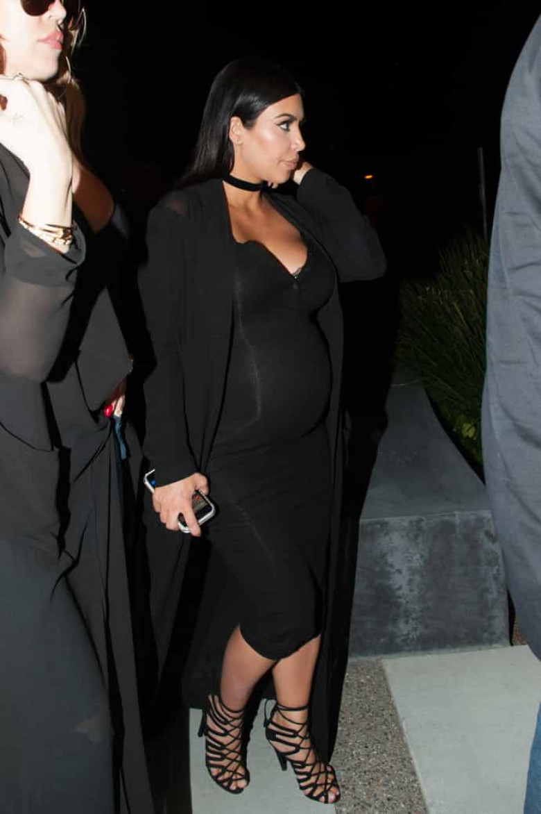 Основу основ «беременного» гардероба Кардашьян составляют обтягиващие платья-майки базовых оттенков: черного, серого и бежевого, к которым звезда добавляет длинные плащи, жакеты и пальто и, разумеется, обязательную обувь на шпильке. Самый громкий ажиотаж за все время беременности девушки вызвал ее наряд на показе Givenchy в Нью-Йорке: платье из прозрачного кружева стало настоящим манифестом принятия собственного тела, готовящегося подарить новую жизнь.