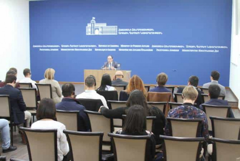 Ողջունելով մասնակցիներին՝ նախարաի տեղակալն անդրադարձավ ղարաբաղյան հիմնախնդրի պատմությանը, կարգավորման գործընթացի վերջին զարգացումներին, Ադրբեջանի ապակառուցողական քաղաքականությանը, ինչպես նաև ներկայացրեց տարածաշրջանային և միջազգային այլ խնդիրների շուրջ ՀՀ մոտեցումները: