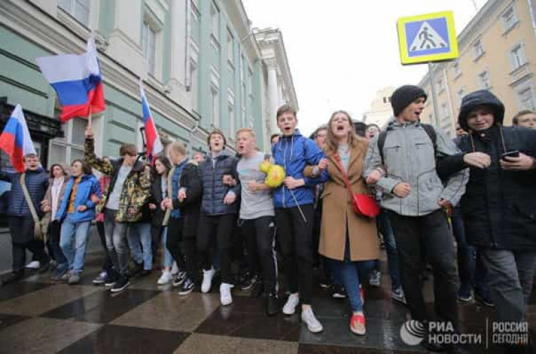 Ոստիկանությունը ձերբակալում է Սանկտ Պետերբուրգում չարտոնագրված հավաքի մասնակիցներին