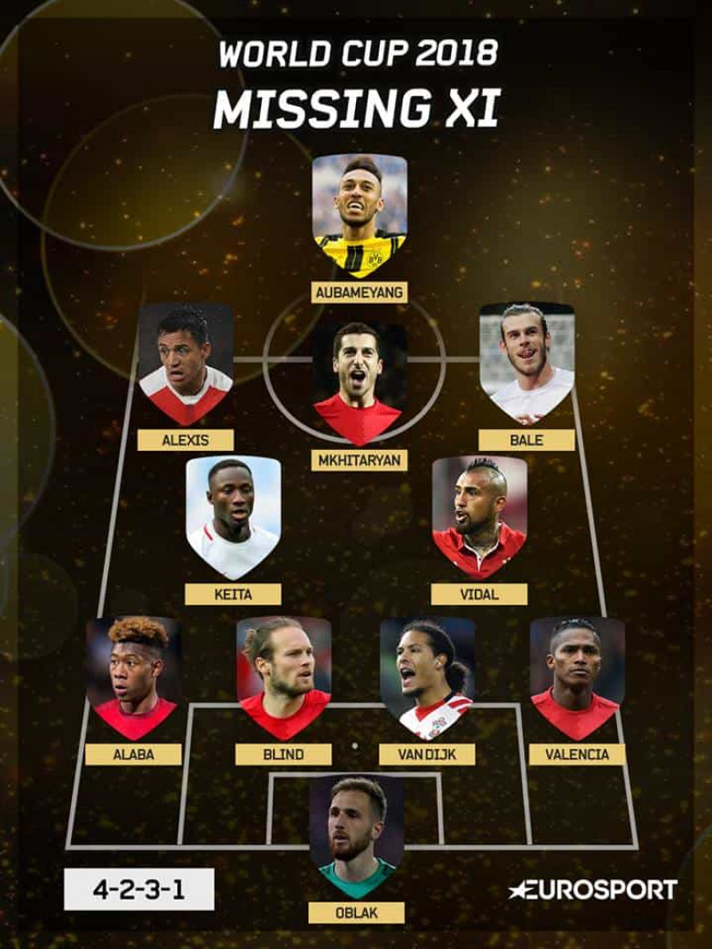 ՍՊՈՐՏ«Eurosport»-ը կազմել է խորհրդանշական հավաքական, որտեղ ընդգրկել է այն ֆուտբոլիստներին, ովքեր բաց կթողնեն Աշխարհի 2018թ. առաջնությունը: