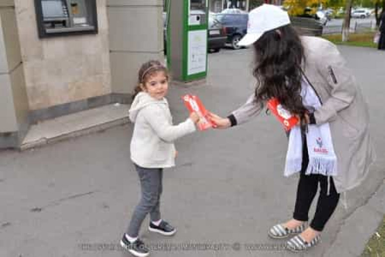 Երիտասարդ կամավորները բաժանում են «Էրեբունի-Երևան 2799» տոնական միջոցառումների ծրագրի տեղեկատվական ուղեցույցներ