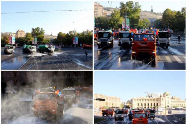 Երևանյան փողոցներին «ջրային թարմություն» հաղորդելու և տոնական օրվա գեղեցիկ մեկնարկը տալու գործին սիրով ներգրավվել էին Երևանի քաղաքապետարանի կոմունալ տնտեսության վարչության, օպերատիվ ծառայությունների և «Սանիթեք» ընկերության աշխատակիցներն ու շուրջ 70 միավոր հատուկ տեխնիկան: Տոնական երթի ողջ ընթացքն անցավ կանուխ արթնացող երևանցիների հիացական հայացքների և ոգևորող բացականչությունների ներքո։