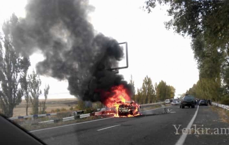 Yerkir.am-ի տեղեկություններով՝ մեքենան բախվել է մայրուղու գովազդային վահանակին և վթարվել, ինչի հետևանքով վարորդը մահացել է: Փրկարարներն արդեն մեկուսացրել են կրակն ու մեքենայից դուրս բերել վարորդի դին: