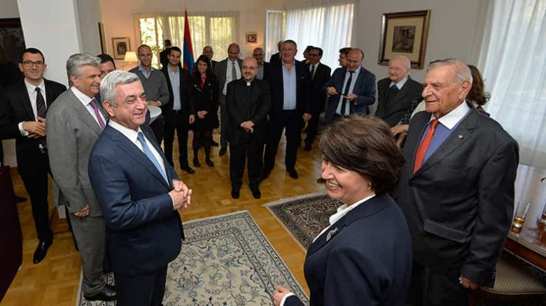Ժնևում՝ Շվեյցարիայի Համադաշնությունում Հայաստանի Հանրապետության դեսպանատանը, նախագահ Սերժ Սարգսյանն այսօր հանդիպում է ունեցել նաև շվեյցարահայ համայնքի ներկայացուցիչների հետ: Հանրապետության նախագահը հանդիպման ժամանակ իր ներածական խոսքում նաև ներկայացրել է Ադրբեջանի նախագահի հետ բանակցությունների արդյունքները: