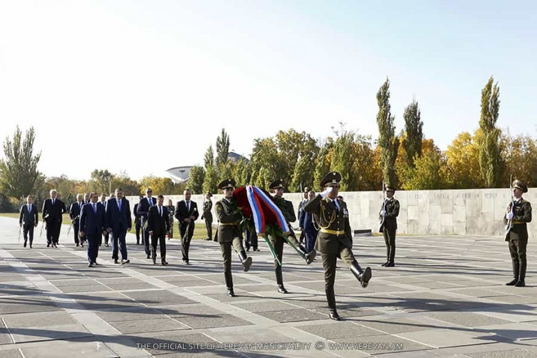 ՔԱՂԱՔԱԿԱՆՊաշտոնական այցով Հայաստանի Հանրապետություն ժամանած Ռուսաստանի Դաշնության վարչապետ Դմիտրի Մեդվեդևը Երևանի քաղաքապետ Տարոն Մարգարյանի և ՀՀ փոխվարչապետ Վաչե Գաբրիելյանի ուղեկցությամբ այցելել է Ծիծեռնակաբերդի հուշահամալիր, ծաղկեպսակ դրել Հայոց մեծ եղեռնի զոհերի հուշարձանին և ծաղիկներ է խոնարհել Հայոց ցեղասպանության Սուրբ նահատակների հիշատակը հավերժացնող անմար կրակի մոտ: