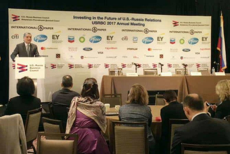 Այդ մասին հայտարարել Է Եվրասիական տնտեսական հանձնաժողովի կոլեգիայի նախագահ Տիգրան Սարգսյանը՝ հոկտեմբերի 27-ին Նյու Յորքում ելույթ ունենալով Ռուս-ամերիկյան գործարար խորհրդի (ՌԱԳԽ) ամենամյա ամփոփիչ հանդիպմանը: Ինչպես «Արմենպրես»-ին տեղեկացրին ԵԱՏՀ-ի մամուլի ծառայությունից, գործարար համաժողովին մասնակցել են պետական իշխանության մարմինների եւ ամերիկյան ու ռուսական խոշոր բիզնեսի ներկայացուցիչները: