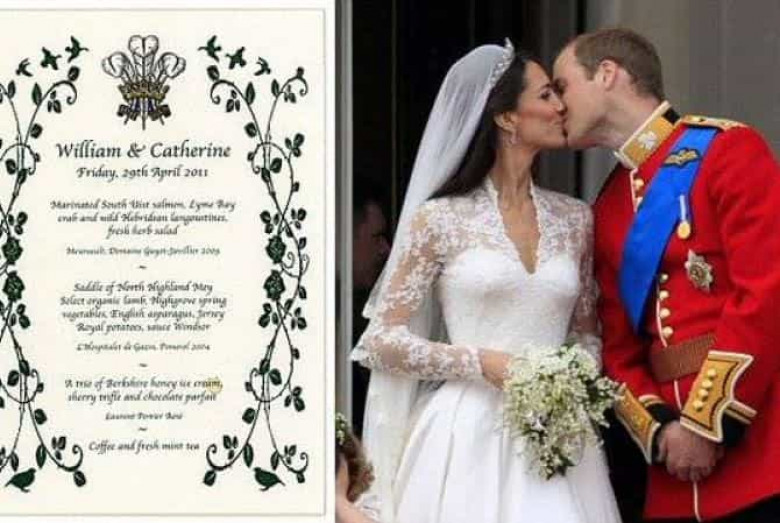 Վաճառքի է հանվել արքայազն Ուիլյամի և Քեյթ Միդլթոնի հարսանեկան ընթրիքի ճաշացուցակը