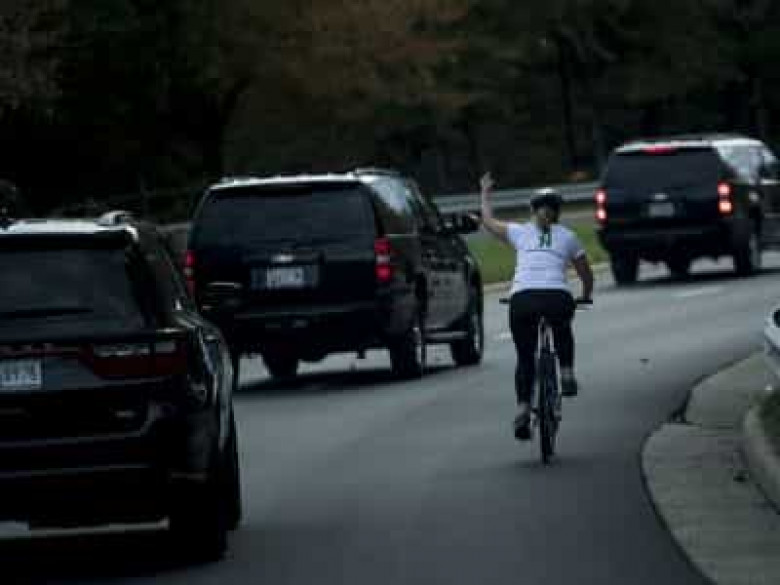 HuffPost-ը հաղորդում է, որ 50-ամյա Ջուլիա Բրիքսմանը հեծանիվով երթեւեկել է, երբ նրա կողքով գոլֆի խաղից հետո վերադարձող Թրամփի շքախումբն է անցել: