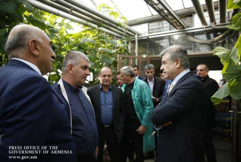 Ինչպես «Արմենպրես»-ին տեղեկացրին ՀՀ կառավարության տեղեկատվության և հասարակայնության հետ կապերի վարչությունից, վարչապետը նախ այցելել է Ոսկևազ համայնքի ջերմոցային տնտեսություն, որտեղ արտադրվում է վարունգ և լոլիկ: Տնտեսությունն ունի 1 հեկտար տարածք, այժմ ընթացքի մեջ է այն ևս 1,2 հեկտարով ընդլայնելու ներդրումային ծրագիրը, որի նպատակով նախատեսվում է ներդնել 800 հազար դոլարին համարժեք դրամ: Տնտեսության սեփականատերը նշել է, որ արտադրանքն այժմ իրացվում է միայն տեղական շուկայում, իսկ տնտեսության ընդլայնման պարագայում նախատեսվում է կազմակերպել նաև արտահանում: Բացի ջերմոցային տնտեսությունից՝ ծրագրվում է հիմնել նաև ինտենսիվ այգի և թռչնաբուծարան: Վարչապետը կարևորել է նշված ծրագրերի իրականացումն ու հիշեցրել, որ կառավարությունը սուբսիդավորում է ինտենսիվ այգիների հիմնման, կաթիլային ոռոգման համակարգերի ներդրման ծրագրերը, ինչի արդյունքում գյուղացիական տնտեսությունների համար հնարավորություն է ստեղծվել ներգրավել ցածր տոկոսադրույքներով վարկային միջոցներ: