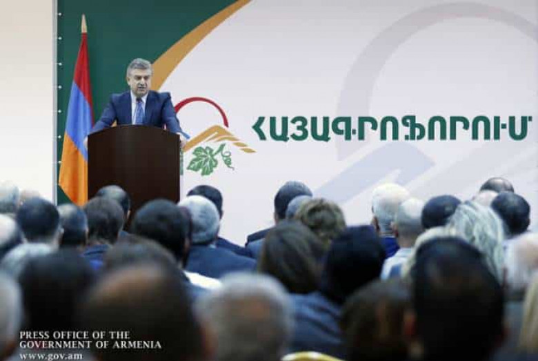 «Մենք նպատակ ենք դրել բարձրացնել գյուղատնտեսության արդյունավետությունը Հայաստանում և ունենք դրա համար անհրաժեշտ բոլոր նախադրյալները՝ արդիական տեխնոլո-գիաների ներդրման, բարձրարժեք գյուղատնտեսության զարգացման, ներմուծման փոխարինման, արտահանման ծավալների ու աշխարհագրության ընդլայնման և գյուղատնտեսությունում տնտեսավարողների գործունեության համար բարենպաստ պայմանների ստեղծման միջոցով: Հատուկ ուշադրության կենտրոնում է պարենային անվտանգության մակարդակի բարձրացումը: Օբյեկտիվորեն գնահատելով այսօրվա մեր իրավիճակը՝ պետք է փաստենք, որ գյուղատնտեսության զարգացման ճանապարհին ունենք նաև բազմաթիվ խնդիրներ, որոնք պետք է լուծենք՝ ոռոգման ջրի կայուն մատակարարումը, զոնինգը, չմշակվող հողերը, արտադրողականության և արդյունավետության պակասը և այլն: Խնդիրների լուծումը յուրաքանչյուրիցս պահանջում է հետևողական աշխատանք»,- ասել է Կարեն Կարապետյանը՝ ավելացնելով, որ կառավարության այսօրվա ջանքերն ուղղված են ոլորտում ստեղծելու ամուր նախադրյալներ և նոր հնարավորություններ՝ մրցունակ, շահութաբեր, կայուն զարգացող և ինդուստրիալ գյուղատնտեսության զարգացման համար: