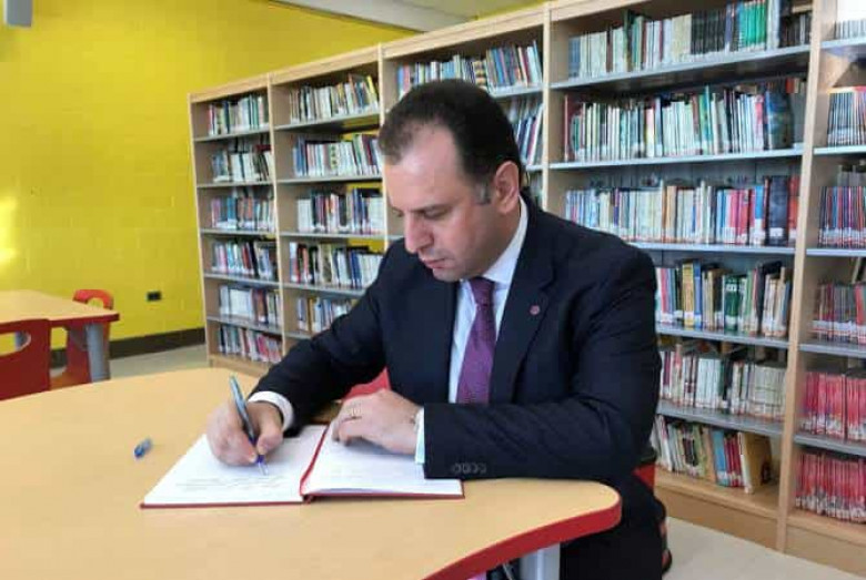 Ինչպես «Արմենպրես»-ին տեղեկացրին ՀՀ պաշտպանության նախարարության տեղեկատվության եւ հասարակայնության հետ կապերի վարչությունից, պաշտպանականգերատեսչության ղեկավարին վարժարանում դիմավորել են սաները՝ ՀայաստանիՀանրապետության զինված ուժերի զինանշանով շապիկներով և կարդացել հայ զինվորինհասցեագրված իրենց պատրաստած նամակը։ Վարժարանի դահլիճում սաները նաևփոքրիկ համերգային ծրագիր են ներկայացրել հյուրերին։ Շնորհակալություն հայտնելովջերմ ընդունելության համար, Վիգեն Սարգսյանը նշել է, որ այլ երկրներ այցերի ընթացքումմշտապես կարևորել է հանդիպումները հայկական դպրոցներում, քանի որ առանցդպրոցների անհնար է պահպանել հայկական ինքնությունը։