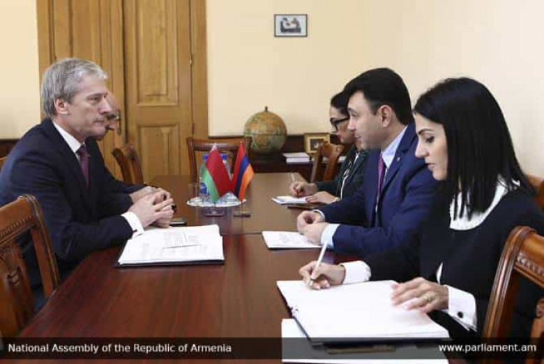 ՔԱՂԱՔԱԿԱՆՀՀ Ազգային ժողովի նախագահի տեղակալ, ՀՀ Ազգային ժողովի եւ Բելառուսի Հանրապետության Ազգային ժողովի միջեւ համագործակցության միջխորհրդարանական հանձնաժողովի համանախագահ Էդուարդ Շարմազանովը նոյեմբերի 20-ին հանդիպել է Բելառուսի Ազգային ժողովի Ներկայացուցիչների պալատի նախագահի տեղակալ, միջխորհրդարանական հանձնաժողովի համանախագահ Բոլեսլավ Պիրշտուկի հետ: