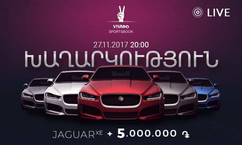 Այսօր, ժամը 20:00, Vivarobet.am կայքում և VivaroBet-ի Youtube-յան էջում ուղիղ հեռարձակմամբ կցուցադրվի առաջին Jaguar-ի և 5.000.000 դրամի խաղարկությունը: