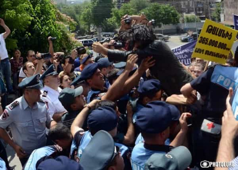 NEWS.am–ի թղթակիցը հաղորդում է, որ քիչ առաջ, երբ ակտիվիստները տեղեկացան, հանձնաժողովը հաստատել է էլեկտրաէներգիայի թանկացման ՀԷՑ–ի հայտը, կրքերը կրկին բորբոքվեցին եւ նրանք ի նշան բողոքի ձվեր եւ լոլիկներ նետեցին հանձնաժողովի շենքի ուղությամբ, ինչից հետո բախում սկսվեց ոստիկանների եւ ցուցարարների միջեւ, ոստիկանները բերման ենթարկեցին մի քանի ցուցարարի։