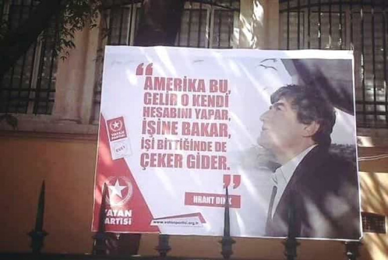 Կուսակցությունը փողոցներում փակցնում է պաստառներ Հրանտ Դինքի լուսանկարով և մեջբերում է ժամանակին Միացյալ Նահանգների մասին նրա արած արտահայտությունը, որում ասվում է. «Սա Ամերիկան է, գալիս իր հաշիվներն է անում, իր գործին է նայում, իսկ երբ գործն ավարտվում է, քաշվում, գնում է»: