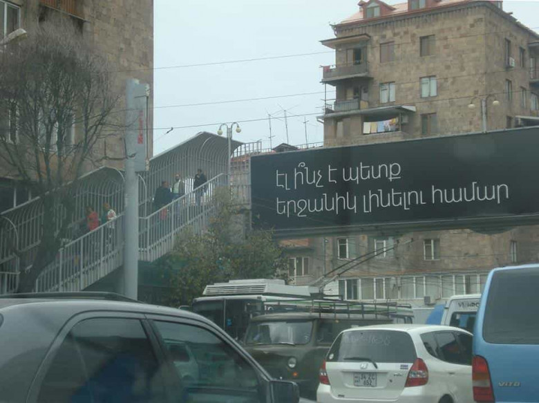 Ու հեռախոսակապի ընկերություններից մեկի գովազդն էլ, որ հանգրվանել է այդ անցման վրա, լրացրել է պակասը: Իսկապես, «էլ ի՞նչ է պետք երջանիկ լինելու համար...»: