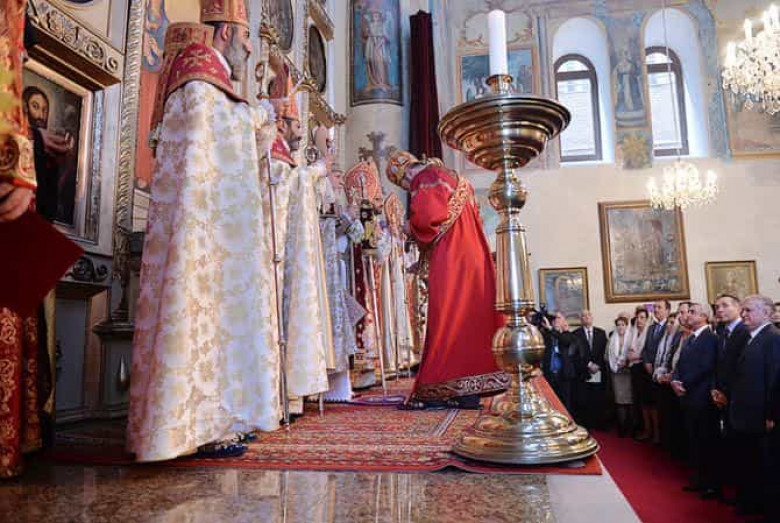 ՀՀ Նախագահն ու առաջին տիկինը ներկա են գտնվել Թբիլիսիի Սուրբ Գևորգ եկեղեցու վերաօծման արարողությանը